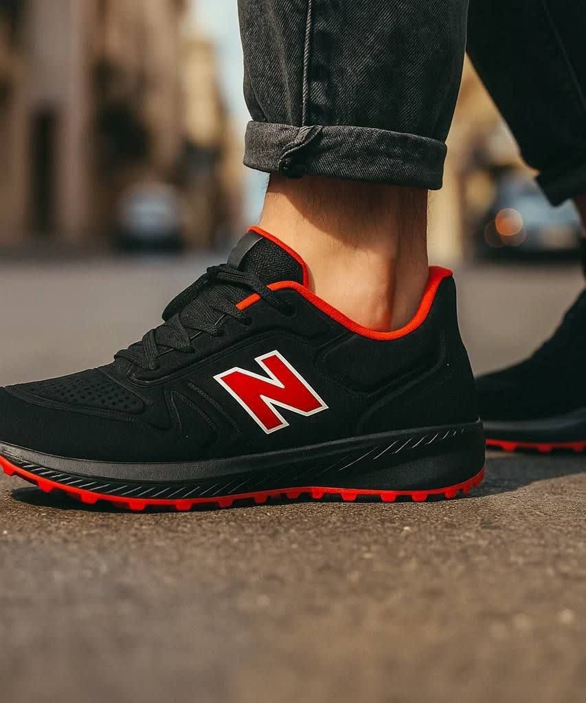 فروش عالی کفش کتونی اسپرت مردانه پسرانه مدل نیوبالانس جذاب و بادوام رنگ مشکی قرمز باارسال رایگان