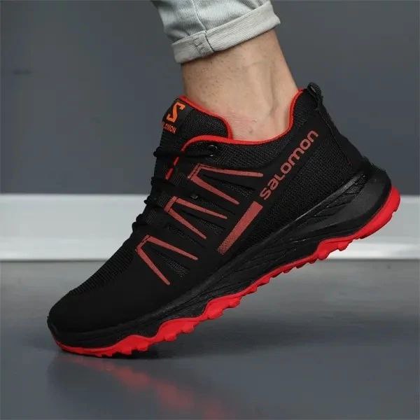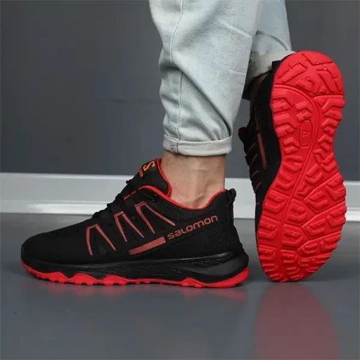 فروش بی نظیر کفش کتونی اسپرت مردانه پسرانه مدل سالامون جذاب و سبک رنگ مشکی قرمزبا ارسال رایگان