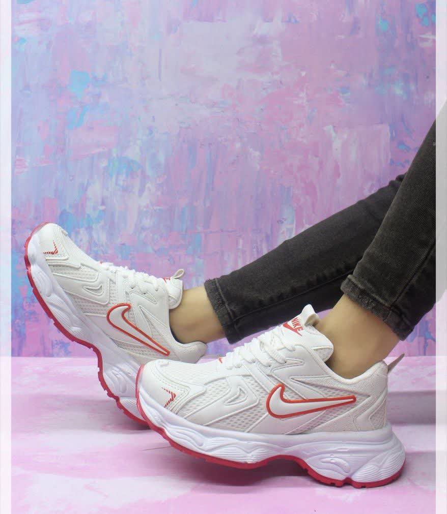 فروش عالی کفش اسپرت زنانه دخترانه مدل نایک زیبا و با کیفیت رنگ سفیدقرمز با ارسال رایگان