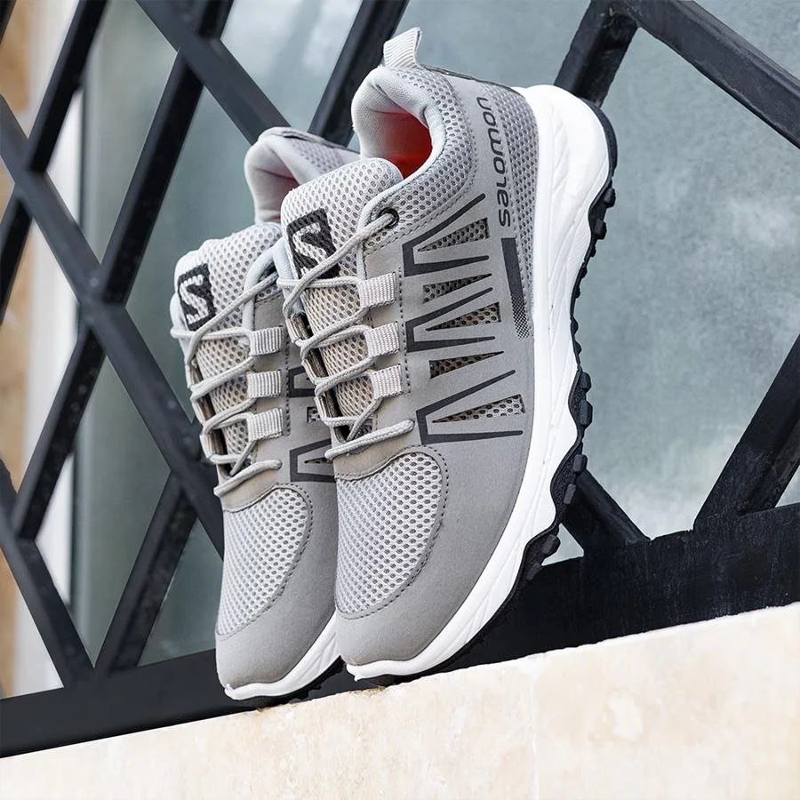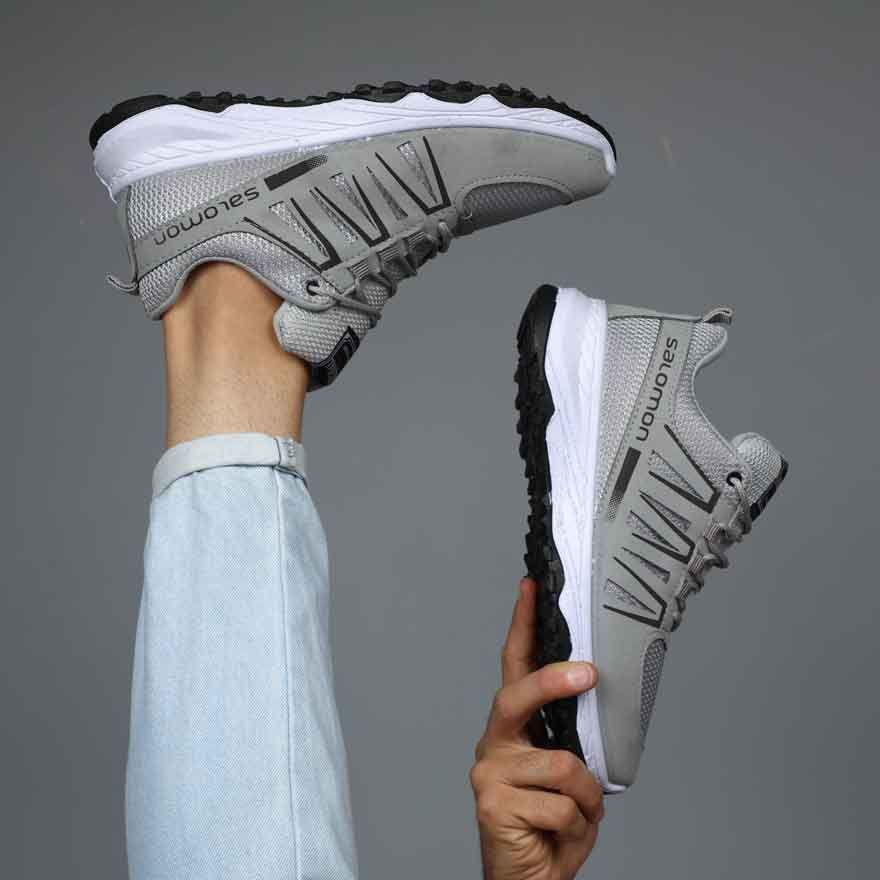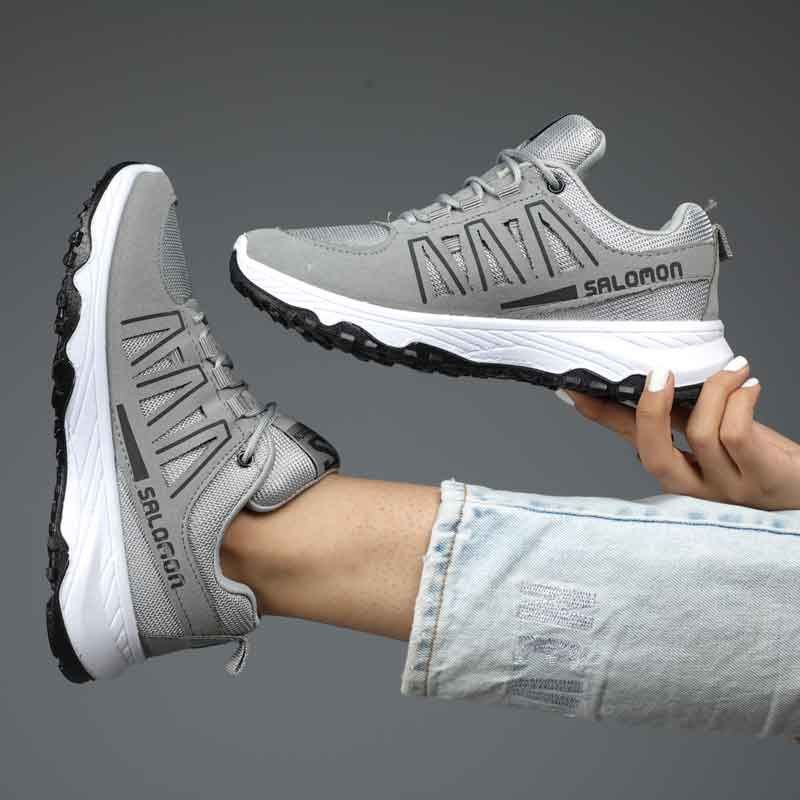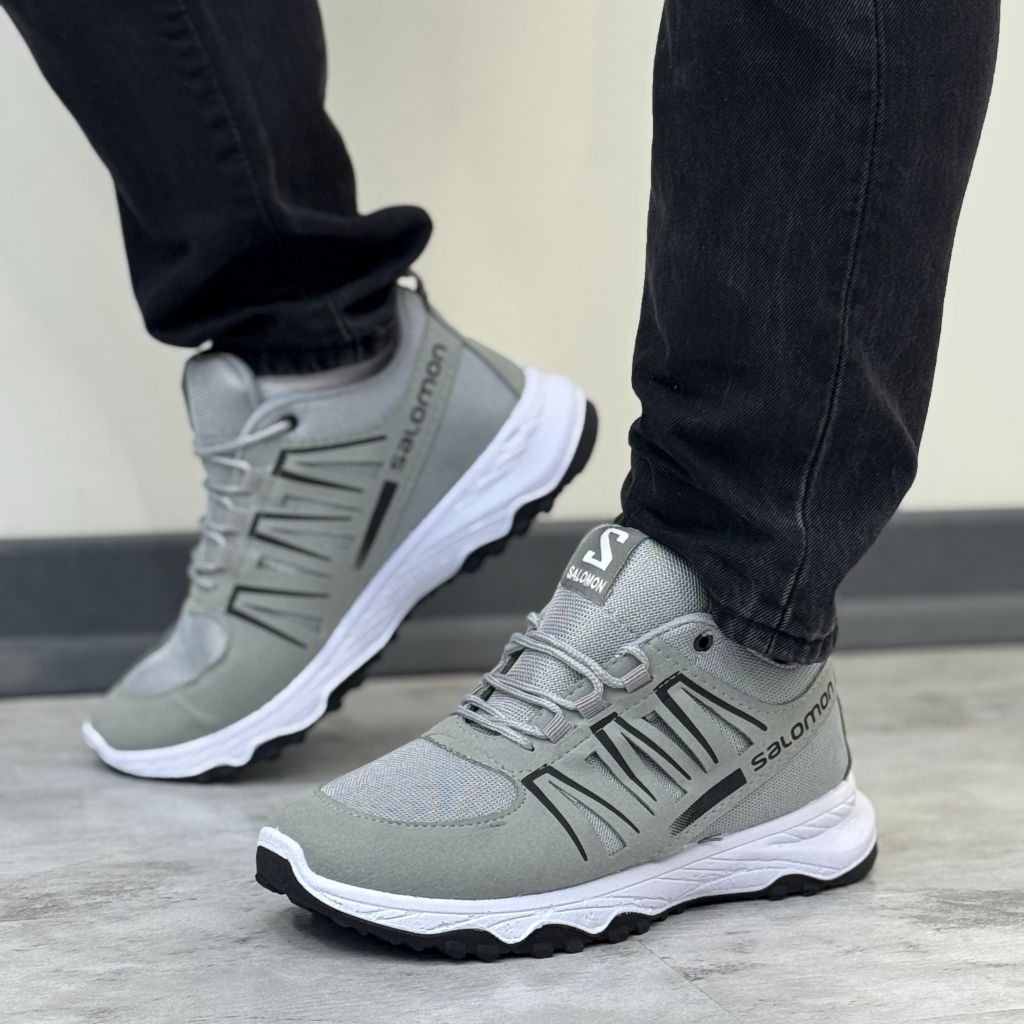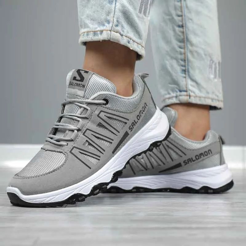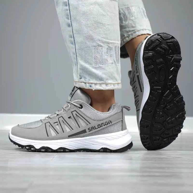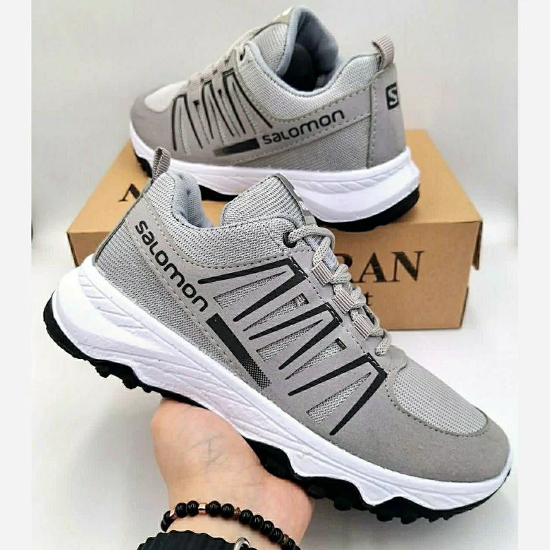حرااااج عالی کفش کتونی اسپرت مردانه پسرانه مدل سالامون خاص رنگ طوسی مشکی زیره سفید با ارسال رایگان