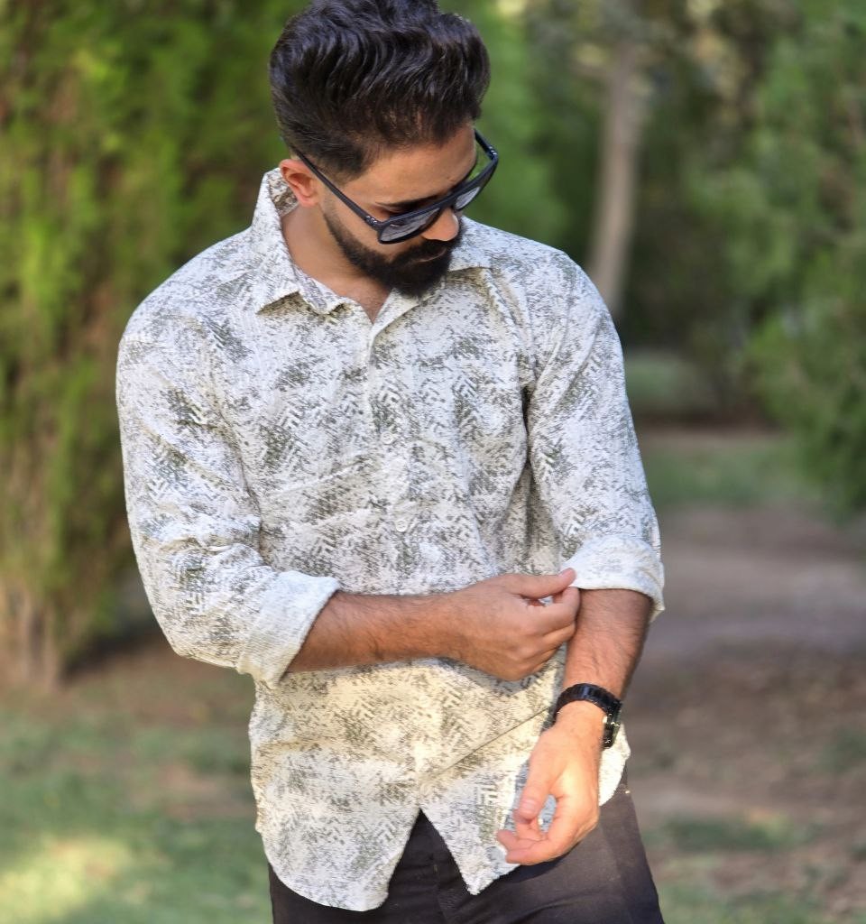 حراج ارزاااان پیراهن پاییزه دکمه ای آستین دار مردانه یه مدل منحصربفرد رنگ سفید طوسی با ارسال رایگان