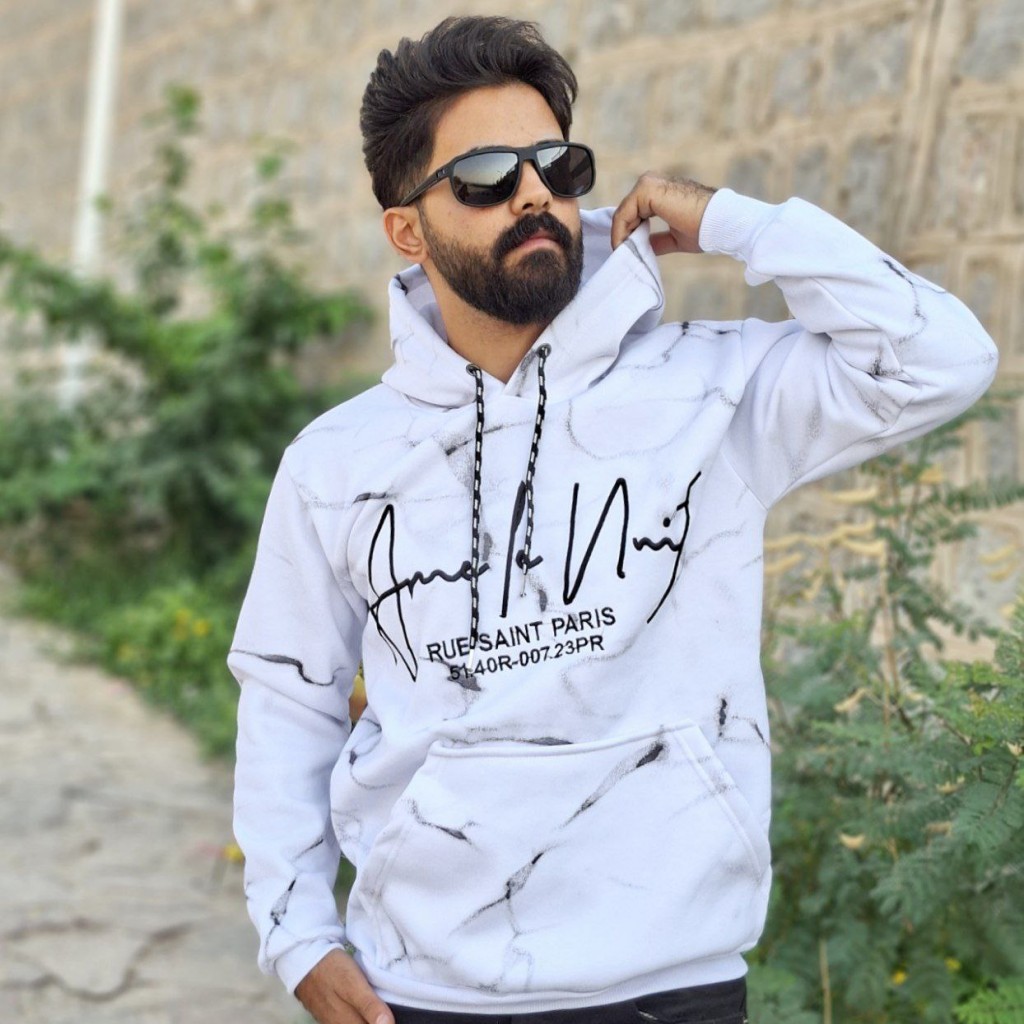 فروش واقعی هودی مردانه پسرانه مدل ضربان مدل شیک پاییزی رنگ سفید باارسال رایگان