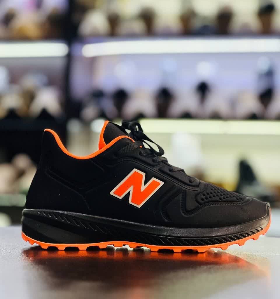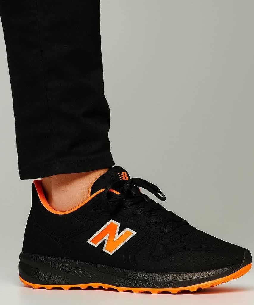 تخفیف بی نظیر کفش کتونی اسپرت مردانه پسرانه مدل نیوبالانس جدید و جذاب رنگ مشکی نارنجی باارسال رایگان