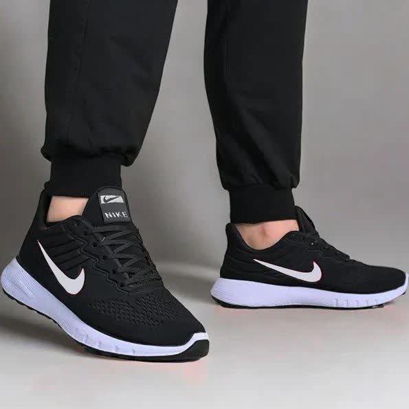 فروش بی نظیر کفش کتونی اسپرت نایک مردانه پسرانه جدید و جذاب رنگ مشکی سفید با ارسال رایگان