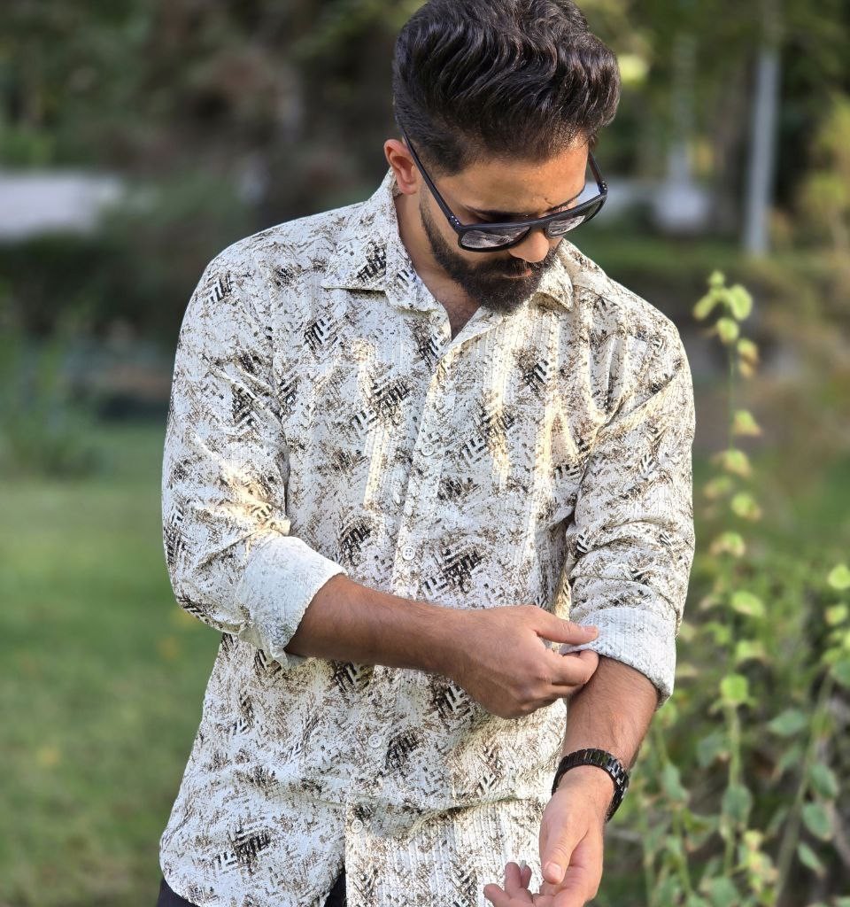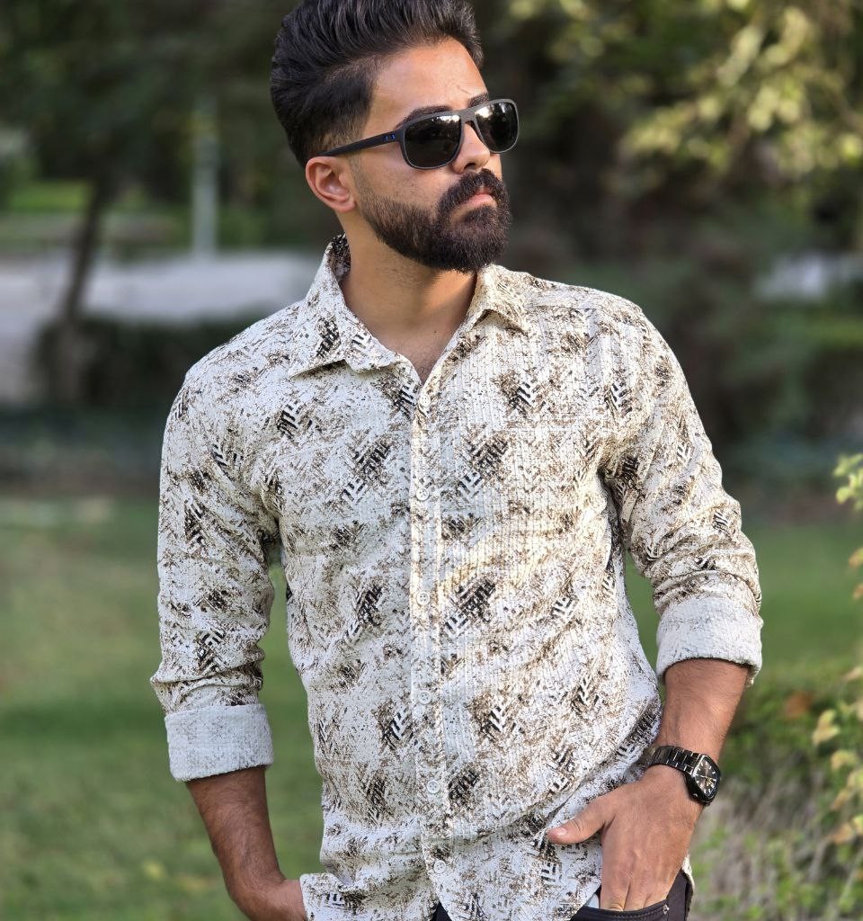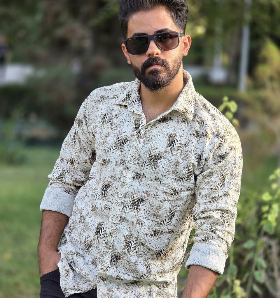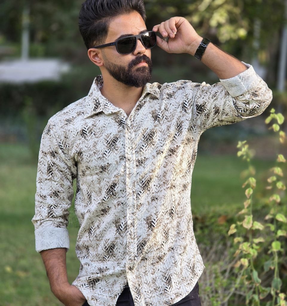 فروش عااالی پیراهن پاییزه دکمه ای آستین دار مردانه جدید و خاص رنگ سفید زیتونی با ارسال رایگان