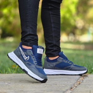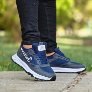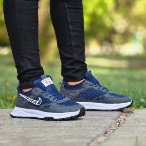 فروش عالی کفش کتونی اسپرت نایک مردانه پسرانه بادوام و مقاوم رنگ طوسی سرمه ای با ارسال رایگان