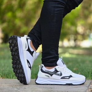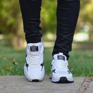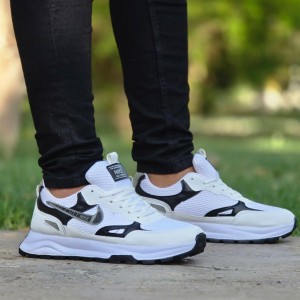 فروش فوق العاده کفش کتونی اسپرت نایک مردانه پسرانه رنگ سفید مشکی با ارسال رایگان
